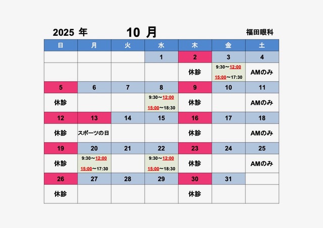 10月診療受付時間変更のお知らせ 神奈川県 大船・鎌倉の眼科 - 福田眼科
