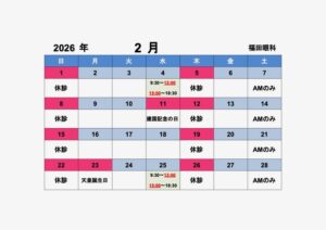 2月診療受付時間変更のお知らせ